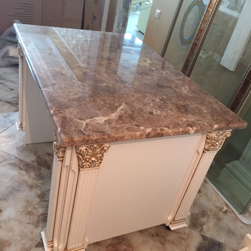 Итоговая стоимость готовых мраморных столешниц складывается из размера, сложности конструкции, геометрии профиля торцов, срочности исполнения и доставки.