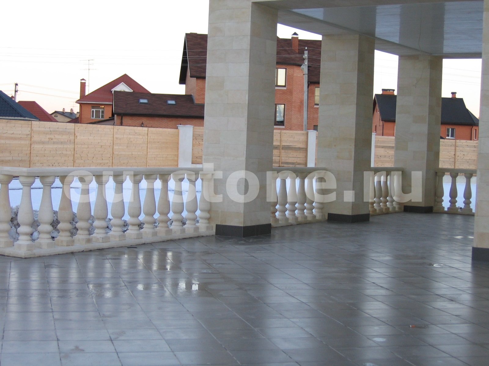 Объём в 320 м² оптимален для отделки большого фасада вместе с декоративными элементами: наличниками, цоколем, колоннами и карнизами. Благодаря легкой обработке, камень легко подгоняется под любые проектные решения.