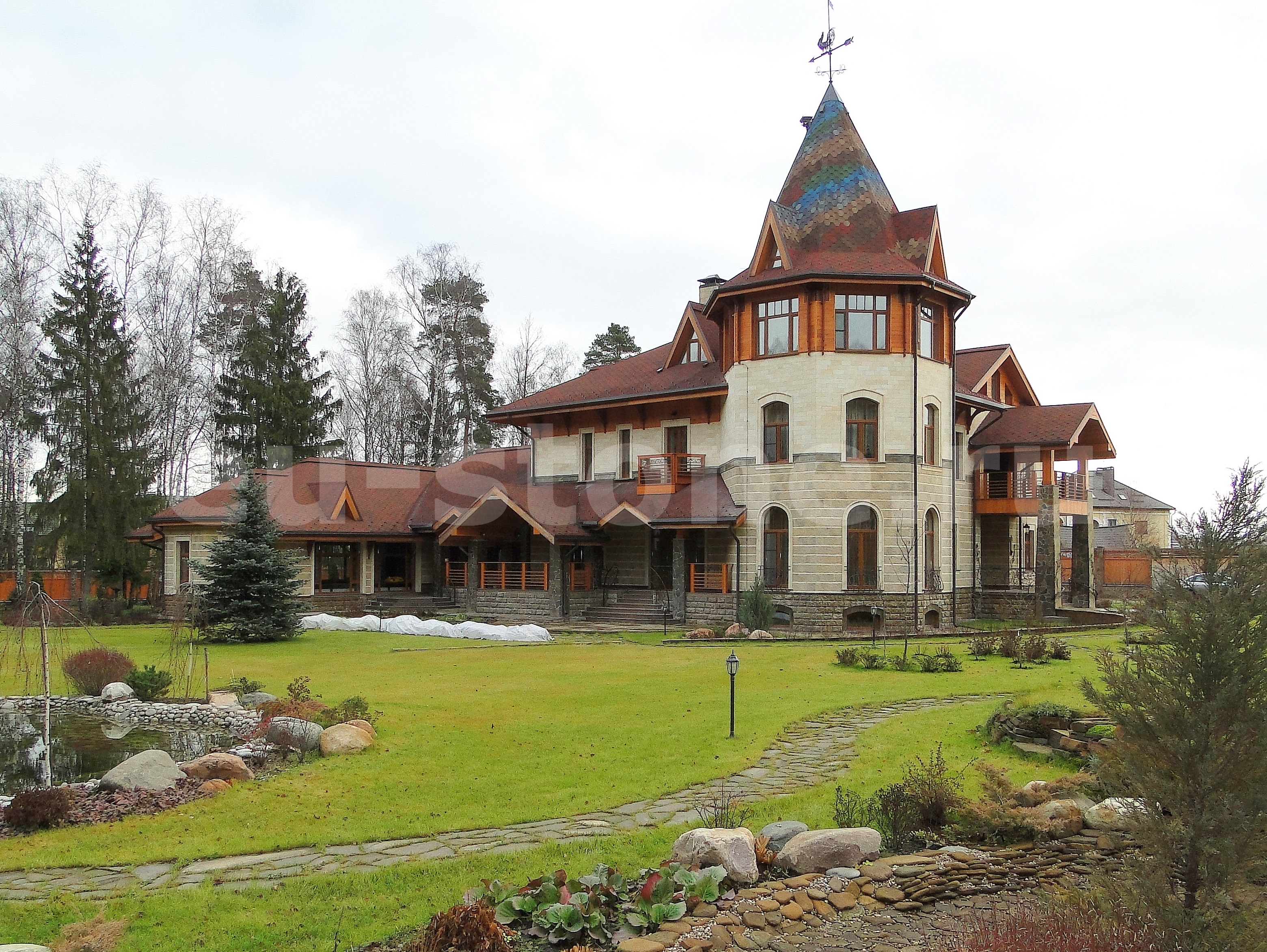 Ракушечник отлично вписывается в различные архитектурные стили — от классики и кантри до современных эко-решений, подчеркивая индивидуальность дома.