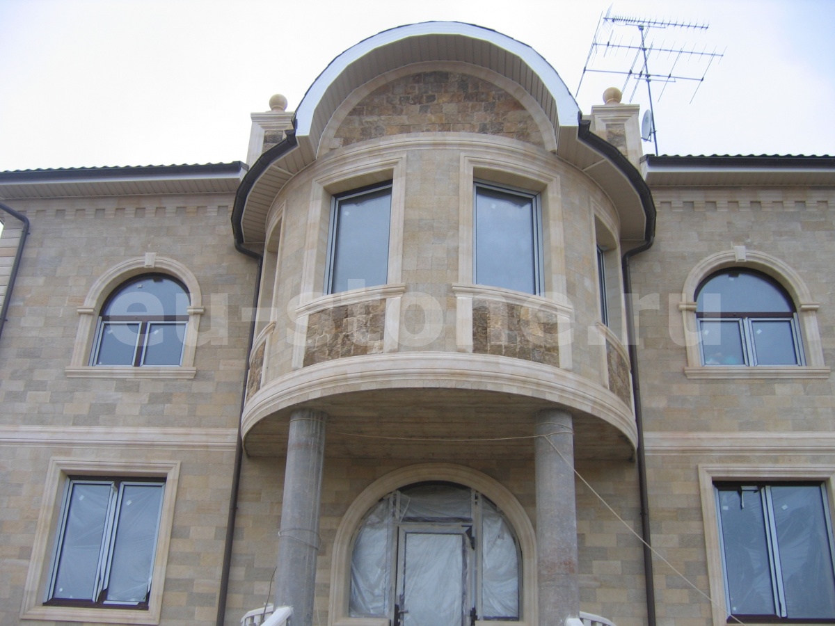 Камень устойчив к перепадам температур, влажности и механическим нагрузкам, что обеспечивает долговечность и сохранение эстетического вида фасада на долгие годы.