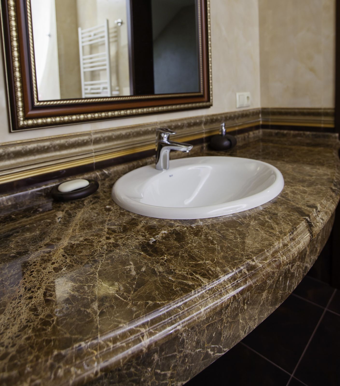 - столешница из бежевого мрамора;